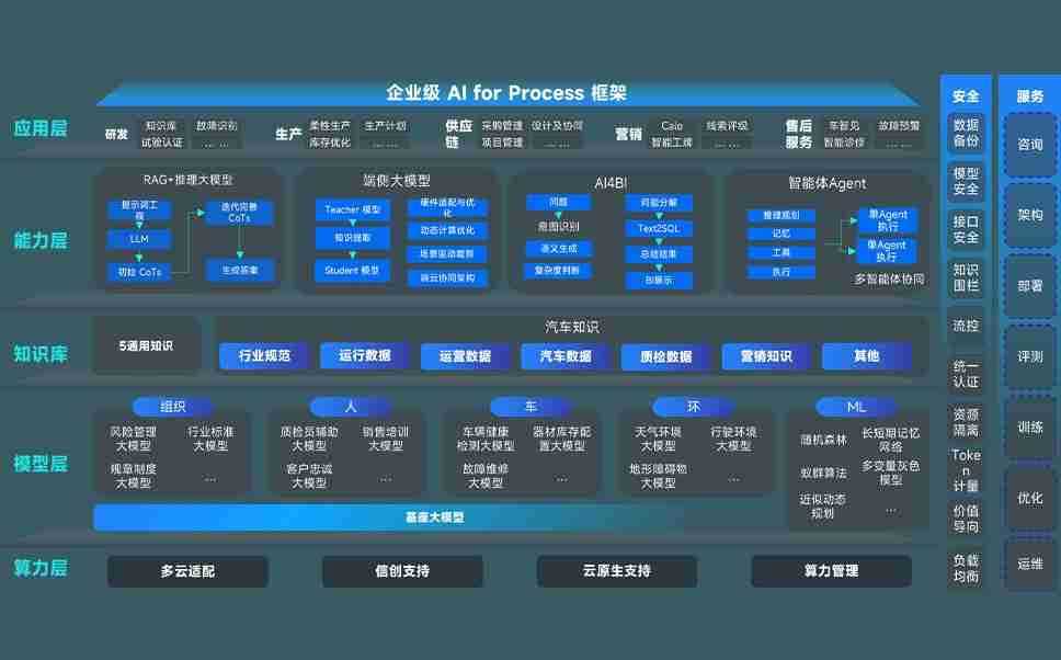 端到端的一站式AI工作空间深度融合了从企业战略规划到日常经营的全流程业务板块,,定向解决车企内部领域多、、、、部门多、、、、链条长、、、、场景碎片化等难题,,支持车企快速构建以AI为核心的生产力写作体系,,实现任务执行与AI能力的无缝集成与交互